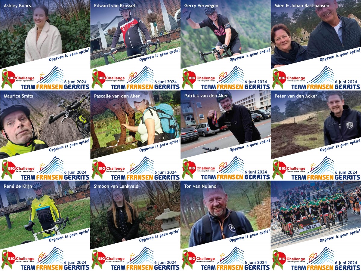 In juni neemt Team Fransen Gerrits weer deel aan de Big Challenge. Collega's en partners die vastberaden zijn om kanker de wereld uit te helpen. Samen zetten we ons in om zoveel mogelijk geld op te halen voor onderzoek naar kanker en naar verbetering van de kwaliteit van leven van mensen met kanker.