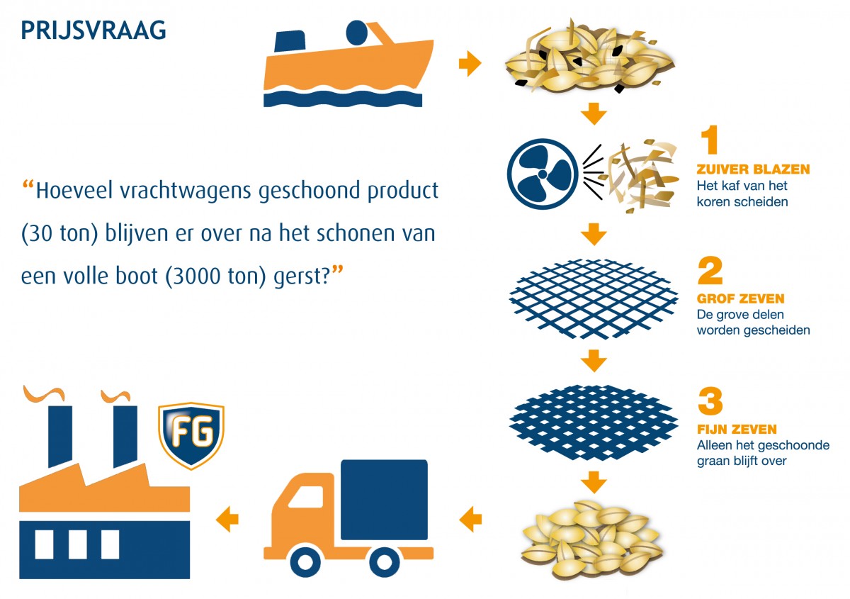 Met het schonen van granen gaan we van goede- naar nog betere kwaliteit. Het schonen gebeurt in 3 stappen; namelijk zuiver blazen, grof zeven en fijn zeven. Per partij wordt er kaf/vliesjes, onkruidzaden, stro en zand/stof afgezeefd om op deze manier de kwaliteit van het graan nóg verder te optimaliseren. Dit zorgt voor minder belasting en daarmee een makkelijkere vertering bij met name hoogproductieve en jonge dieren.